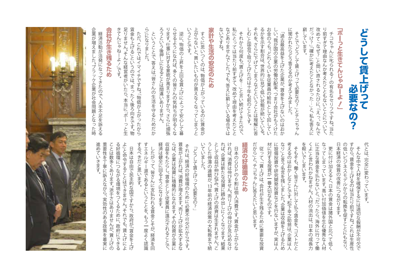 従って、「賃上げは、会社が生き残るために重要な投資だから」と、チコちゃんに答えたいと思います。
